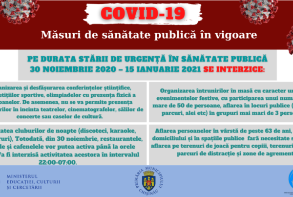 Noutăți 2 decembrie 2020 Noi măsuri de prevenire și control a infecției COVID-19, aprobate de CNESP Vineri, 27 noiembrie, Comisia Națională Extraordinară de Sănătate Publică (CNESP) a declarat stare de urgență… Magdalena